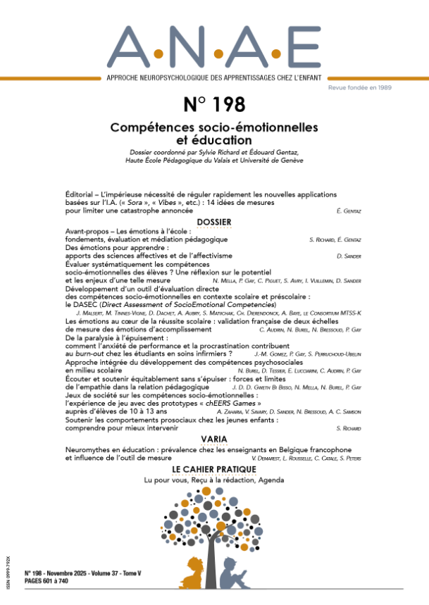 Revue ANAE (N° 198) : « Compétences socio-émotionnelles et éducation »